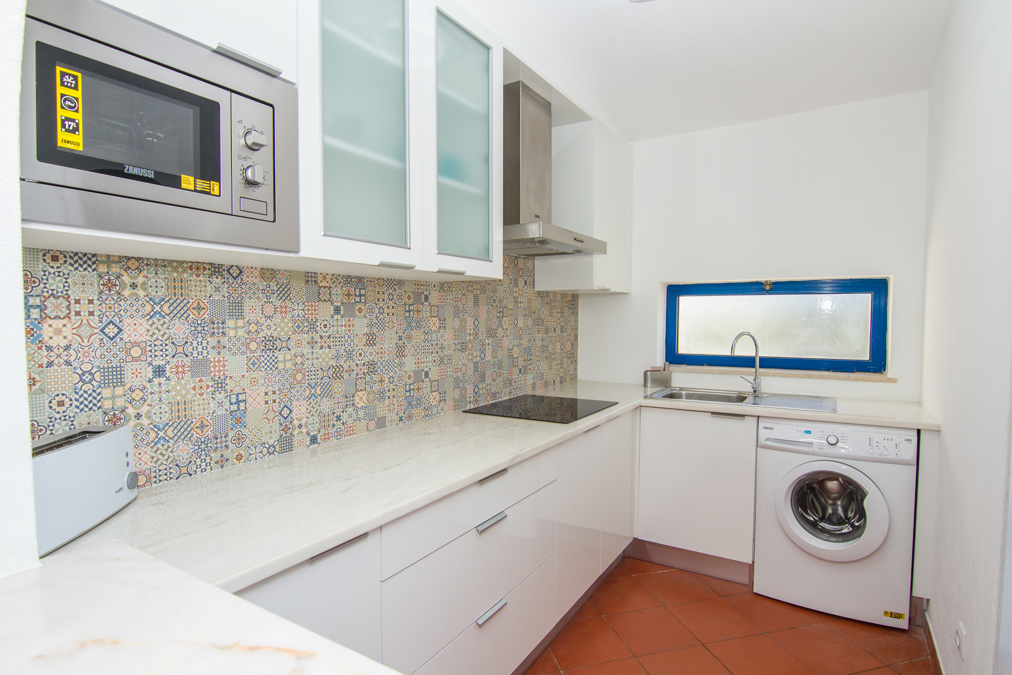 - cozinha equipada com micro-ondas, fogão, frigorifico, torradeira, chaleira, varinha mágica, máquina de café, máquina de lavar roupa e restantes utensílios de cozinha